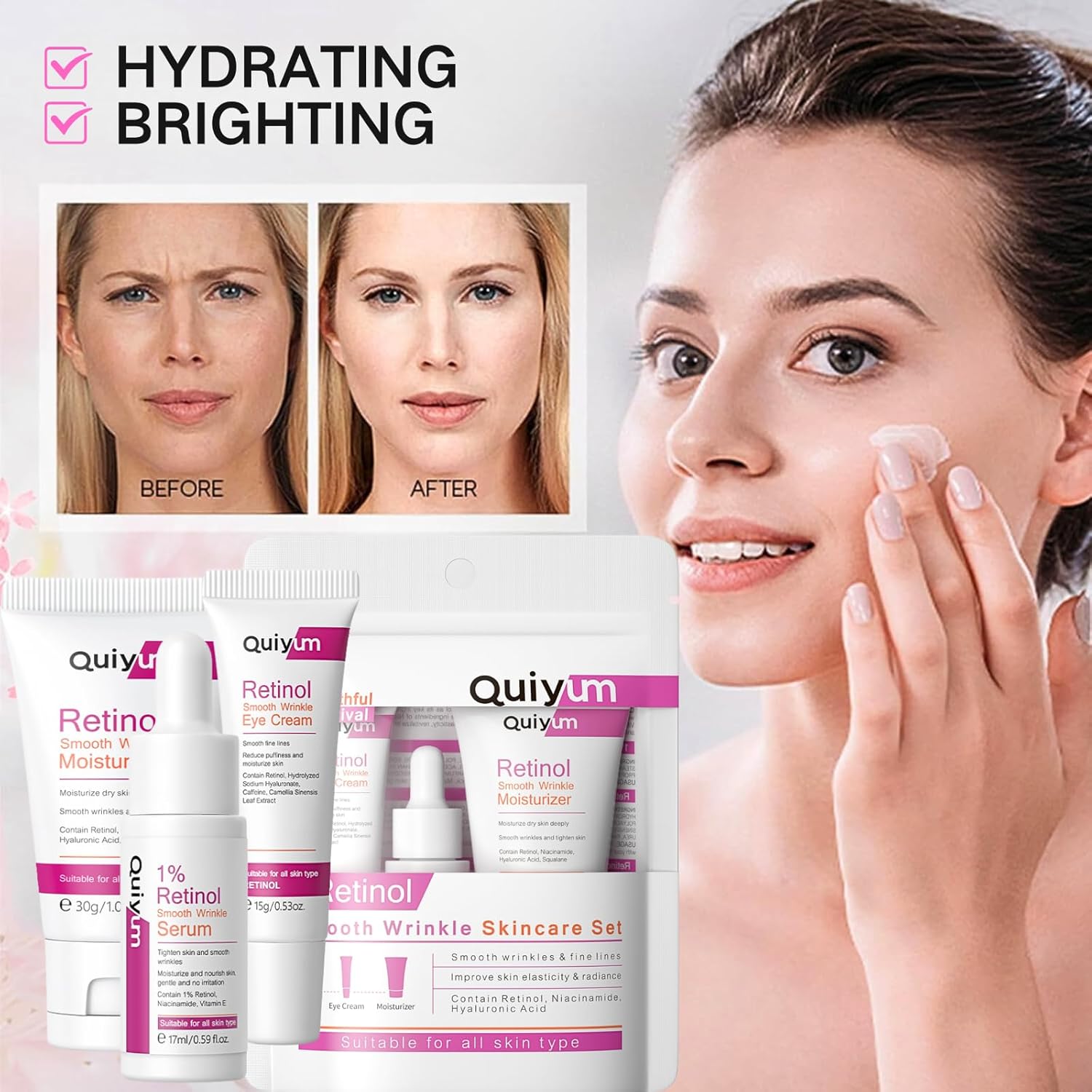 Discover the ultimate skincare gift! This 3-piece Retinol Skincare Set features serum, eye cream, and moisturizer for smooth wrinkles and radiant skin. Perfect for all ages.
